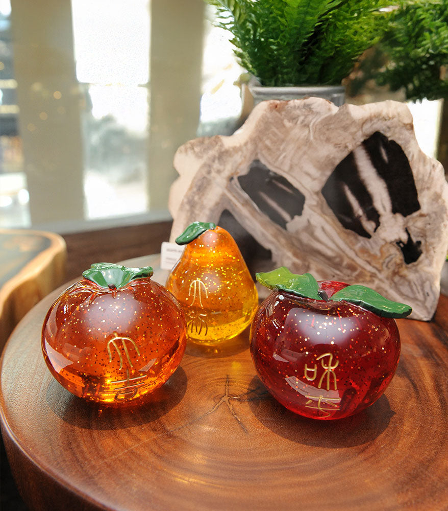 This elegant enhancer features a trio of auspicious fruits, each engraved with a powerful blessing to attract peace, prosperity and abundance. The Apple, engraved with “Her Ping” (Peace) promotes harmony and smooth relationships. The Mandarin Orange with “Tai Kat” (Great Luck) symbolises wealth. The Golden Pear, inscribed with “Tai Ley” (Great Profits) represents prosperity and lasting success.