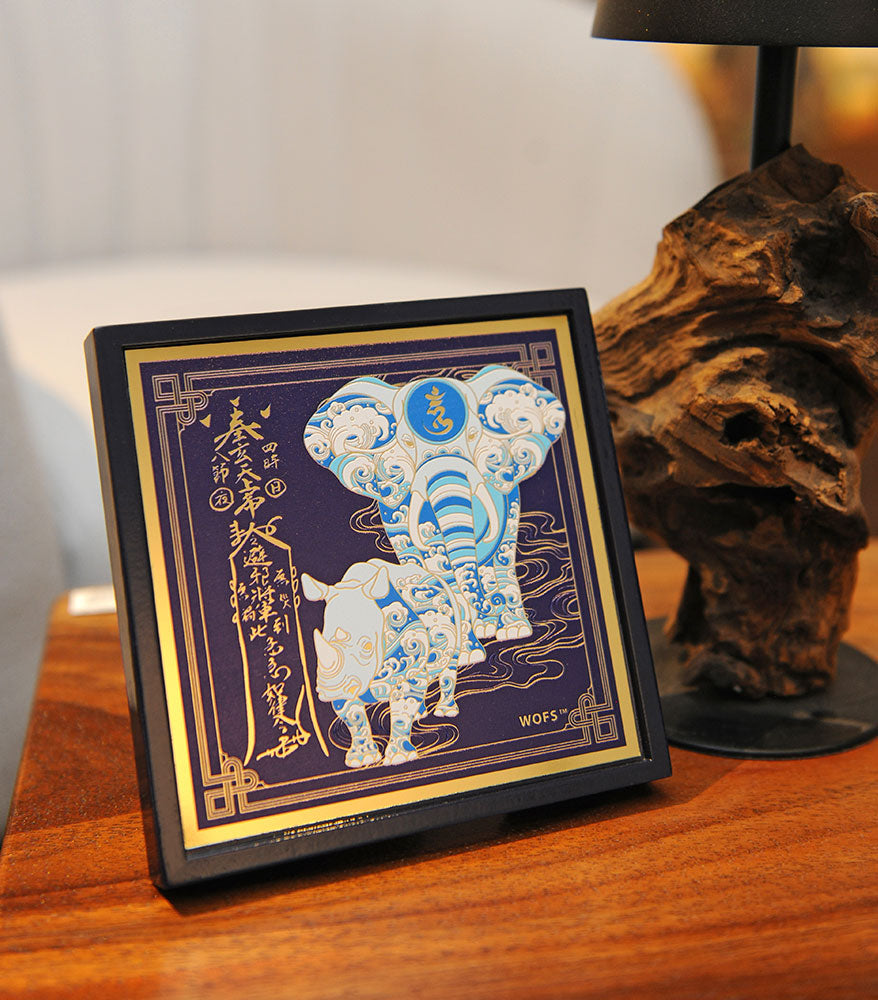 This year’s Anti-Burglary Plaque features the Rhino and Elephant duo, long revered in feng shui as the strongest protectors against theft, break-ins and betrayal. Enhanced with the powerful Anti-Robbery amulet and sacred seed syllable “HUM” on the Elephant, it forms a spiritual shield to guard your home and protect against loss of wealth.