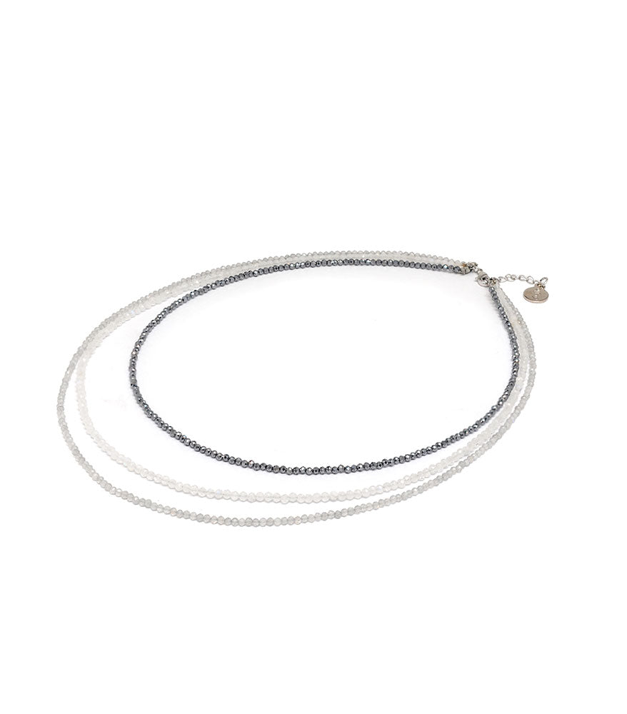 Triple Layered Crystal Necklace with Terahertz, Moonstone and Labradorite