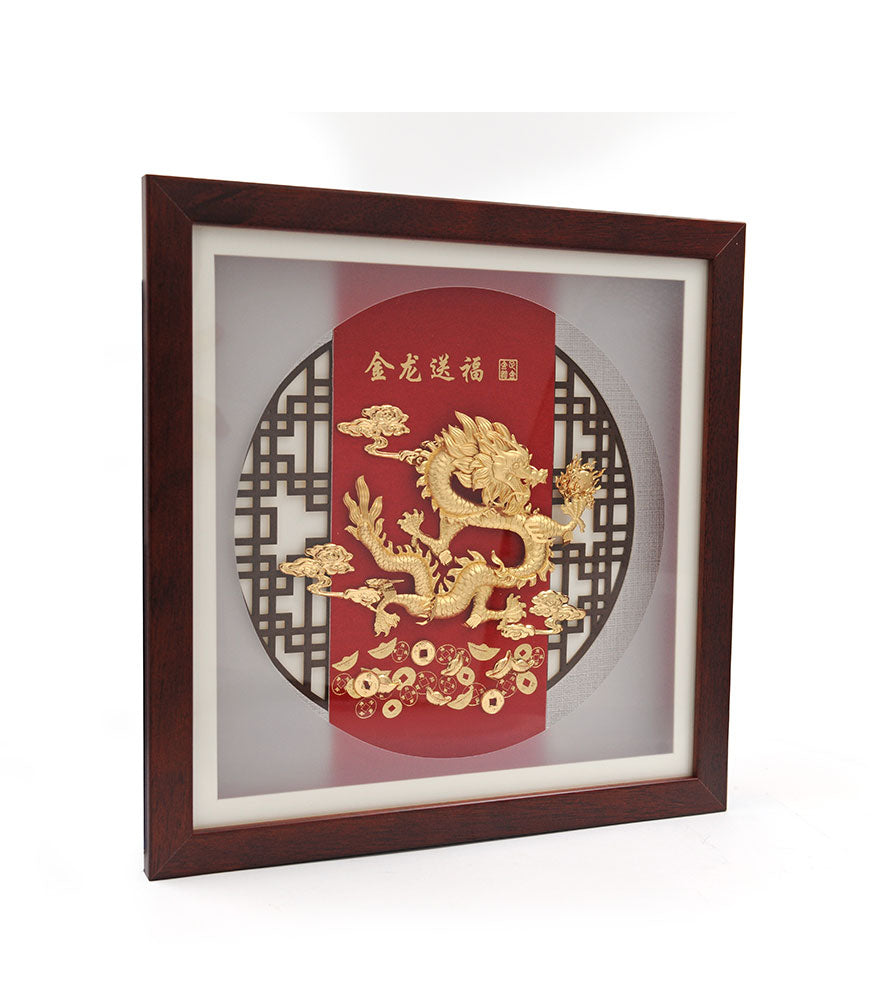 The celestial Dragon is one of the most powerful and auspicious symbols in Chinese culture, revered as a bringer of wealth, success and protection. Clutching a wish-fulfilling pearl, this resplendent golden Dragon represents the realization of goals and the triumph of ambition.