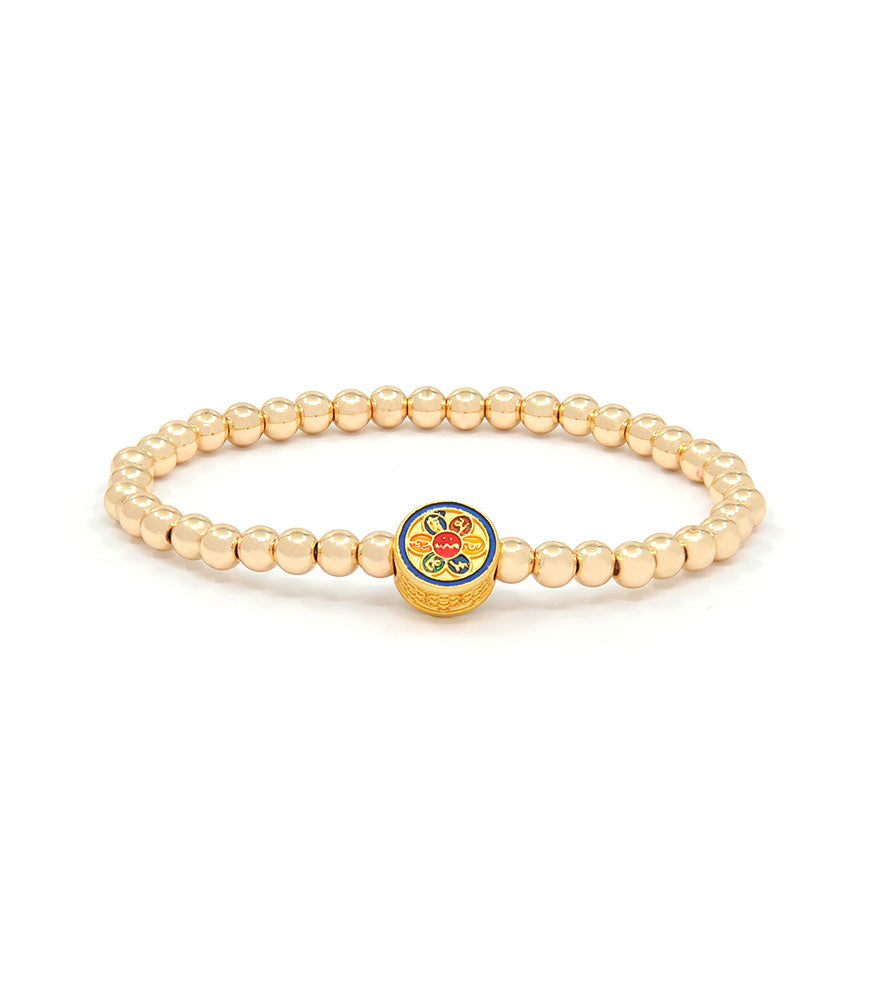 These Tri-powered Affirmation Bracelets have been carefully designed to empower you with all that is necessary in this period of 9. This charm with the Omanipadmehum mantra disc brings blessings from Avalokiteshvara to open your spiritual eye and strengthen your intuition. The English version of this powerful mantra, is strung with rainbow colored beads symbolizing the lotus of the 10 directions.