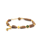 This one-of-a-kind bracelet features naturally shaped Agarwood beads to boost your energy levels and regulate the flow of chi in your body. It wards off bad spirits, amplifies good fortune and removes obstacles to success. It also replenishes the Wood element in the year's Paht Chee chart, enhancing intelligence and creativity. Interspersed are 2 Jade Coin charms and 999 Gold filigree charms.