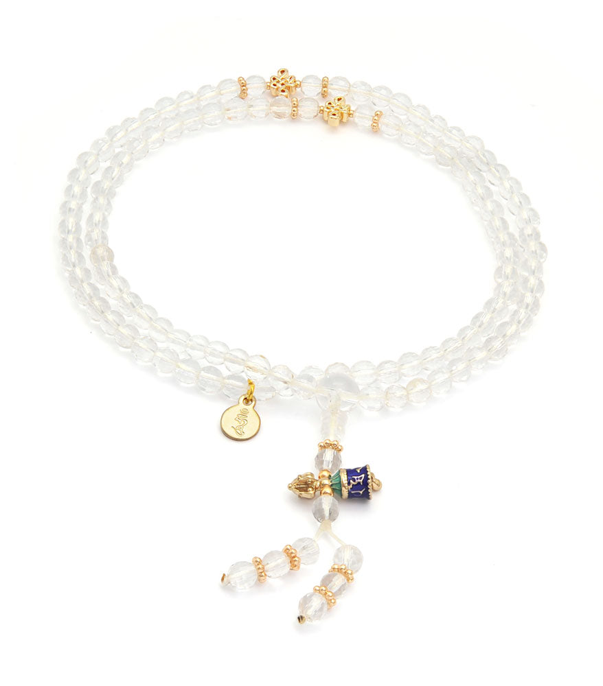 Clear Quartz Crystal is known for its storage and amplification properties, believed to have clarifying properties, absorbing negative energies and transforming them into energies that are more suitable for you. Using this mala regularly when you chant your mantras will empower them with the essence of all the mantras you have chanted.