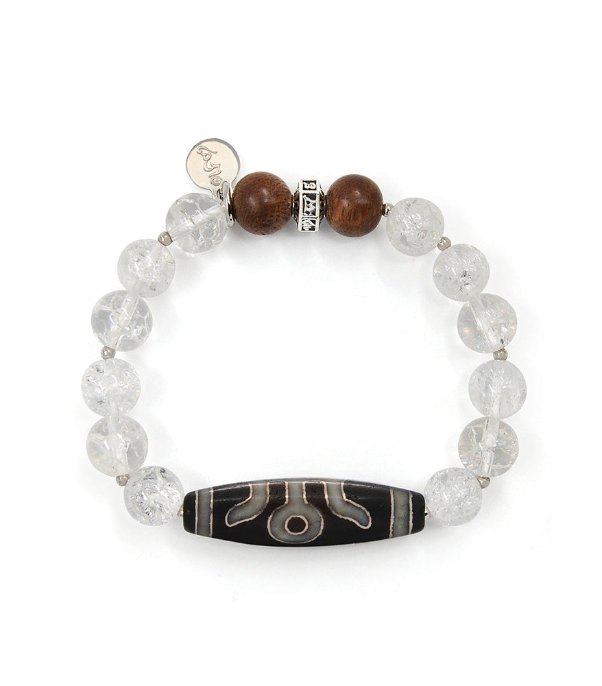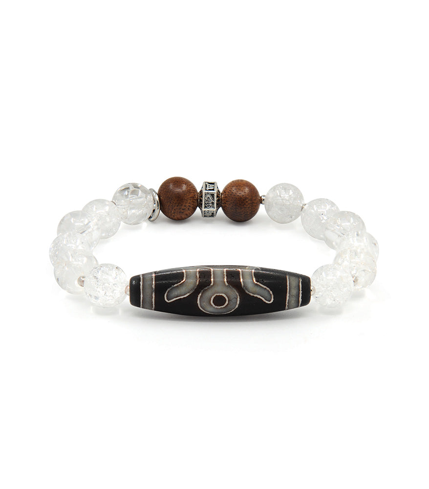 Silver Inlay “Gui Ren” Dzi Bracelet with Agarwood and Snow Crystal