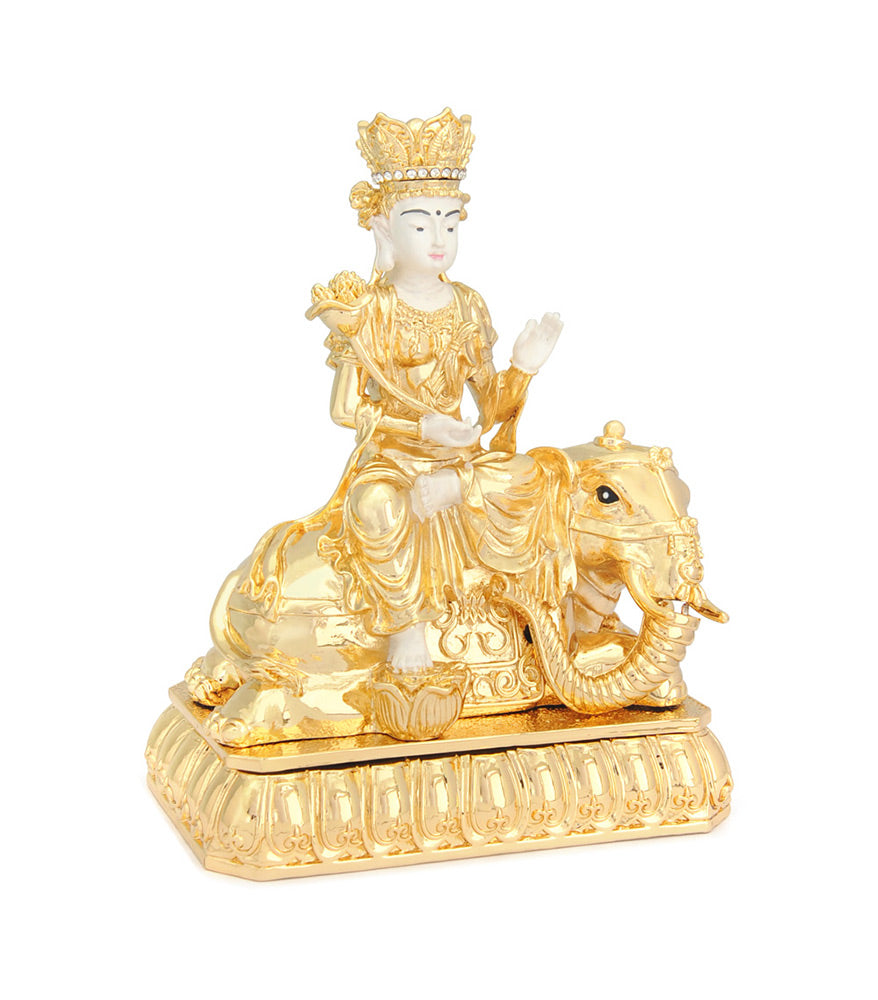 Having her in your home invites compassion and wisdom that will help you and your children develop a kind nature and build strong confidence without fear; Samantabhadra helps you overcome anger and self-doubt and helps you see a better way to living your life. The elephant represents one's journey of transformation to ultimate happiness.