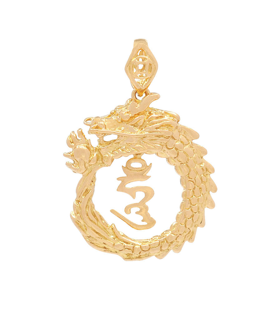 The celestial Dragon is the ultimate symbol of good fortune, bringing success, courage, confidence and prosperity to those who call upon it. It is believed to protect the wearer from bad decisions and brings excellent fortune to those engaged in business pursuits. The sacred syllable HUM represents the trinity of heaven, earth and mankind. Many Buddhists believe that wearing the HUM symbol close to the throat chakra brings a good life and protection from all harm.
