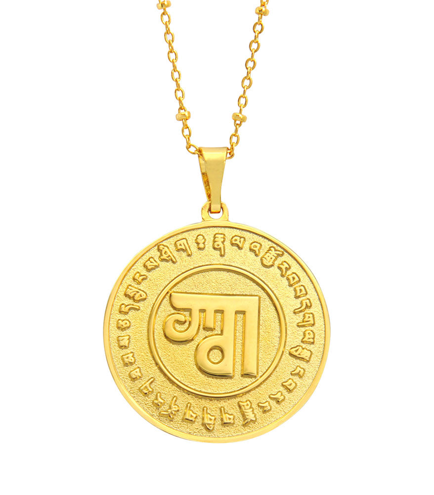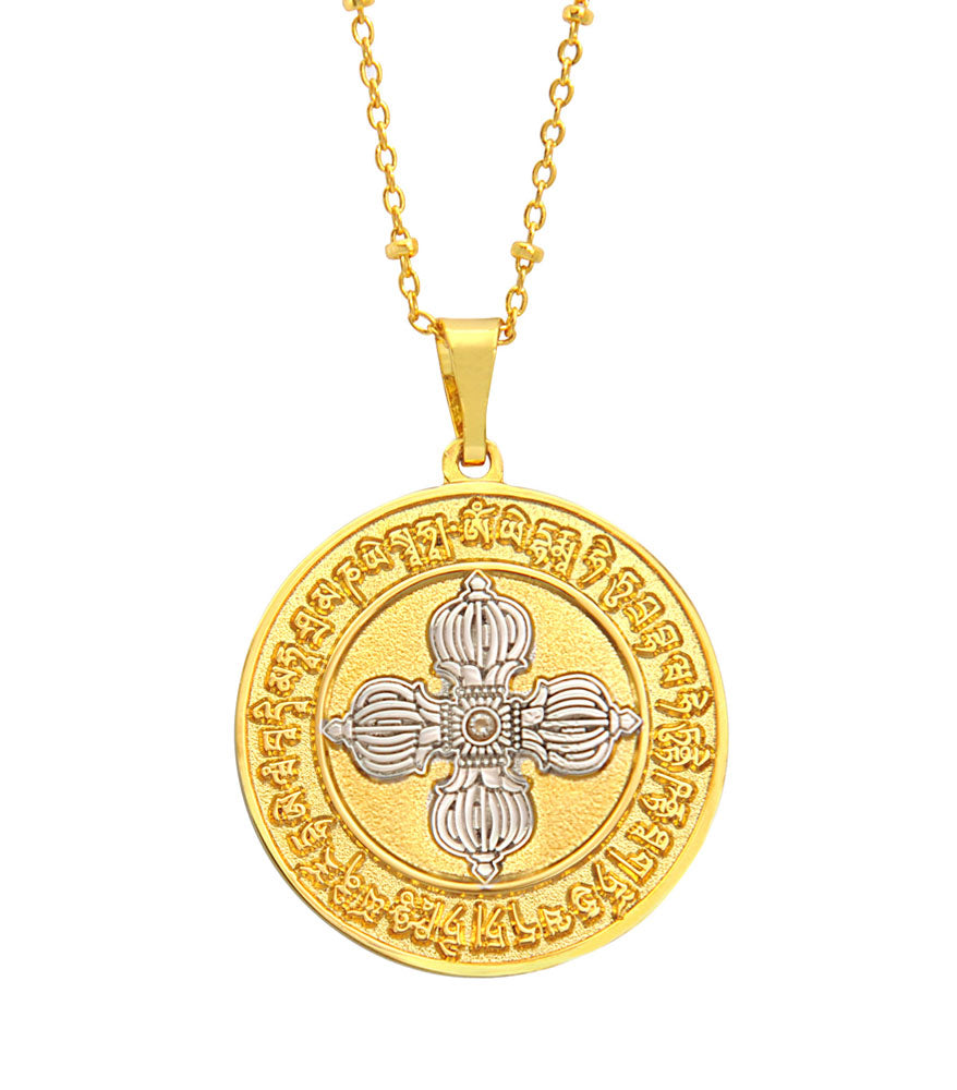 Wear this lucky medallions to attract fabulous good fortune and for protection against negative energies. Plated in 18K gold, this medallion harnesses the tremendous power of Dakini secret amulets and features powerful symbols of fortune to attract magic into your life.