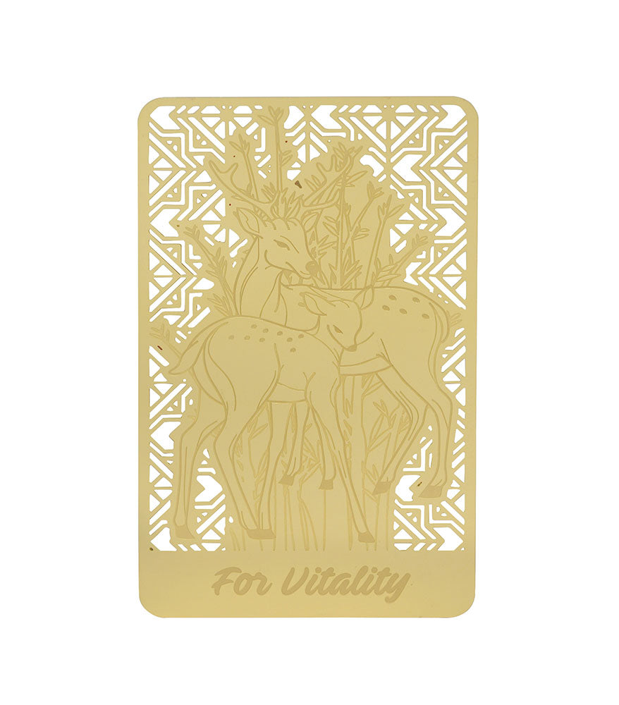 This golden wallet card features a pair of Healing Deer beneath a bamboo grove โ a powerful symbol of vitality, renewal and long life in Chinese culture. The deer represents peaceful healing and gentle strength, while bamboo adds resilience and steady growth.
