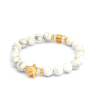 Howlite is a gemstone often worn as a remedy to help dispel negative feelings. You can use it to assist when doing meditation or to help you let go of unhealthy feelings and old emotional pains. This bracelet comes with your animal sign charm plated in 18K gold, as well as a miniature Prayer Wheel charm featuring OM MANI PADME HUM, the mantra of the Compassionate Buddha.