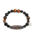 Imbues one with power and vitality, its auspiciousness gets multiplied. Strung with Tiger Eye and Rainbow Obsidian beads for their healing properties, this bracelet will charge up your inner chi, help you move past mental blocks and safeguard against people with bad intentions.