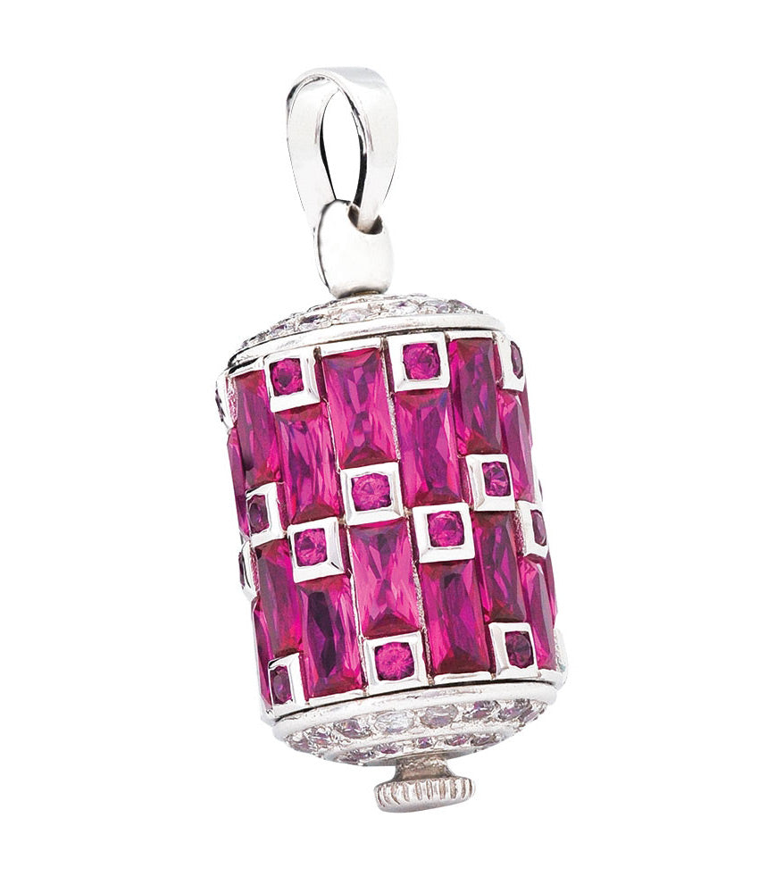 This prayer wheel pendant comes with black silk cord.