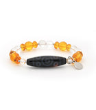 Care instructions: This dzi bracelet contains: citrine beads, clear crystal quartz beads and Dzi Beads. To clean, use a damp cloth but do not soak in water. Silver elements may tarnish when exposed to sweat for prolonged periods; polish with a jewellery cleaning cloth to maintain a quality shine.