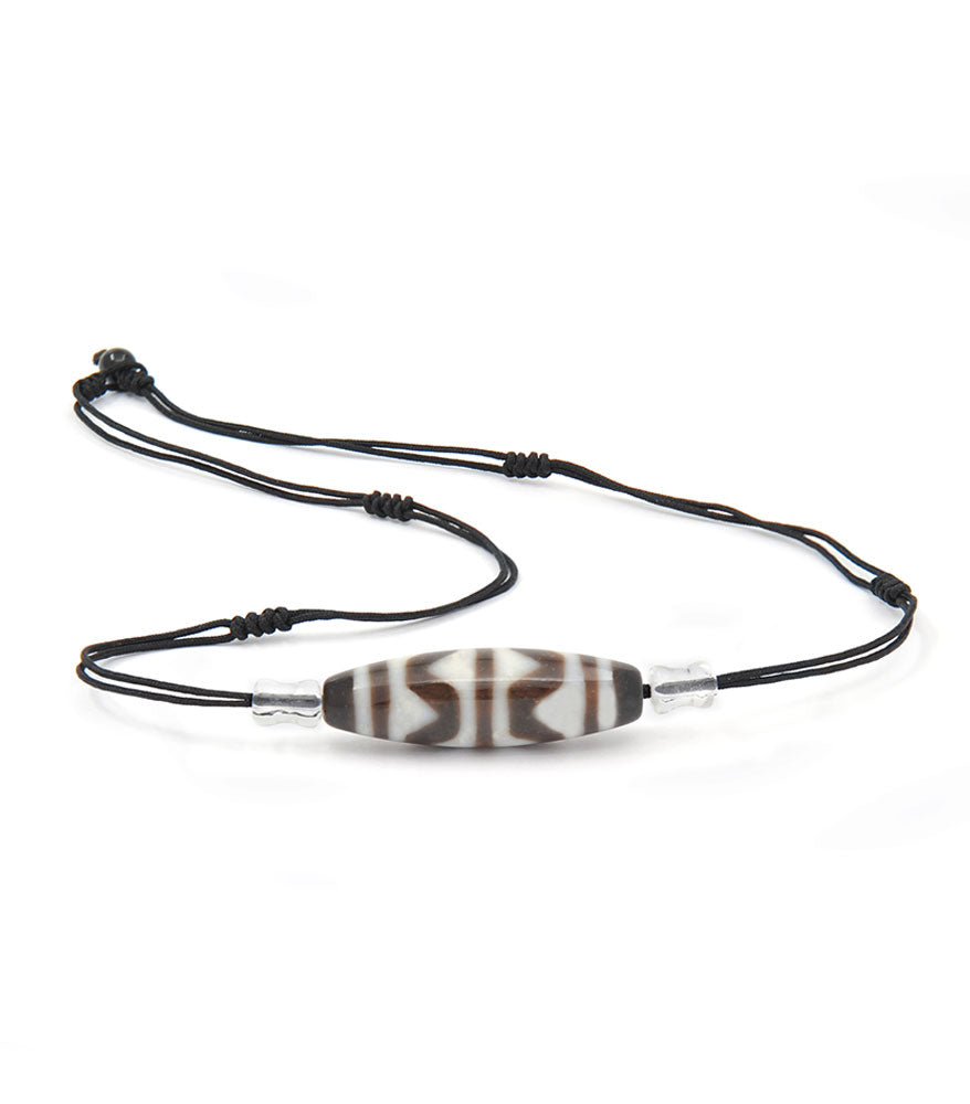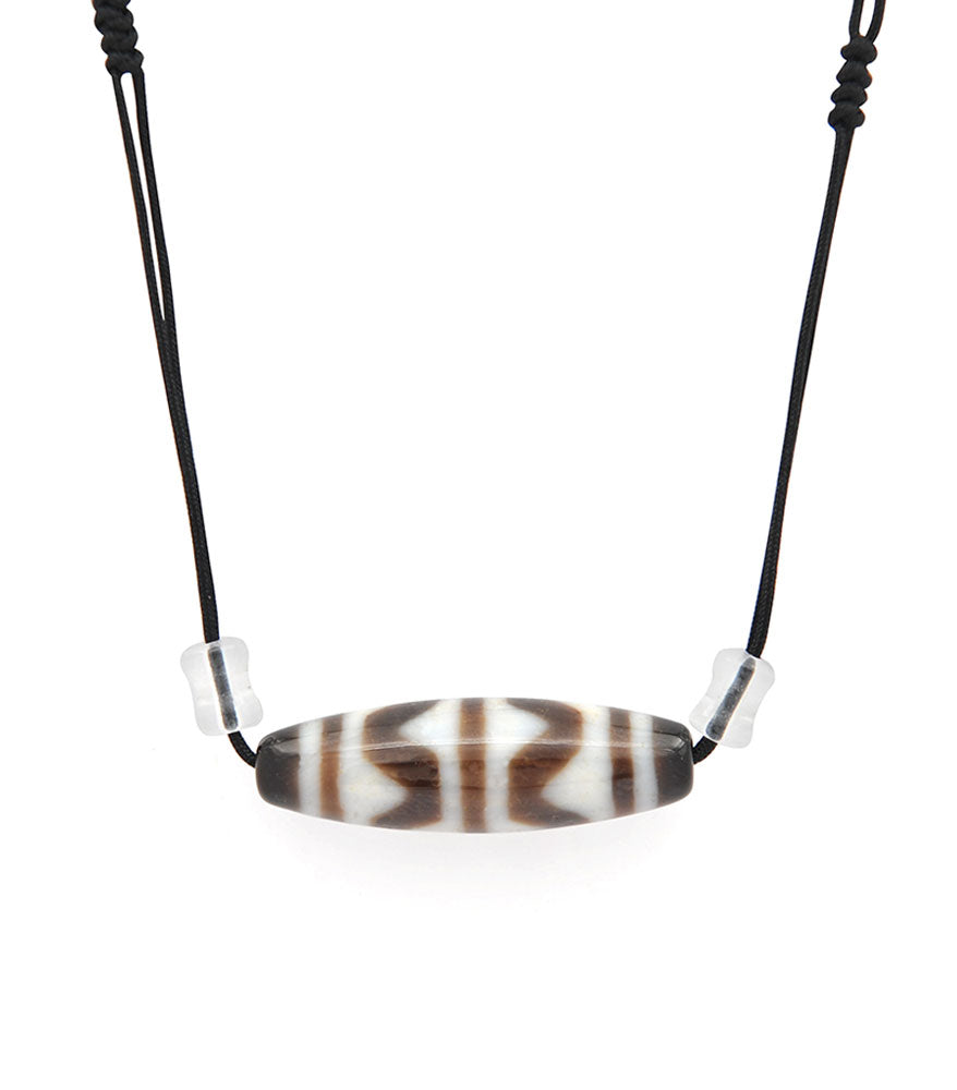 4 Line Tiger Tooth Dzi Bead with 2 pcs 8mm Crystal Peanut Necklace