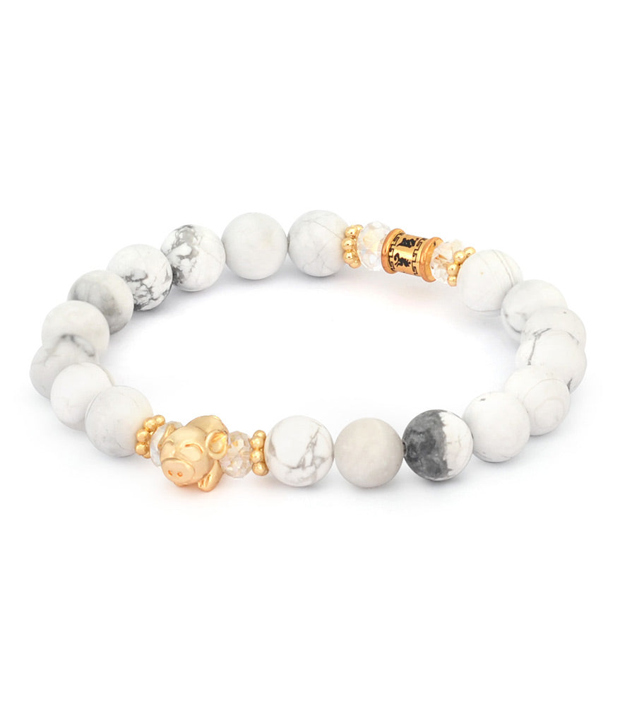 Animal Sign Mantra Bracelet with 8mm Howlite Beads (Boar)