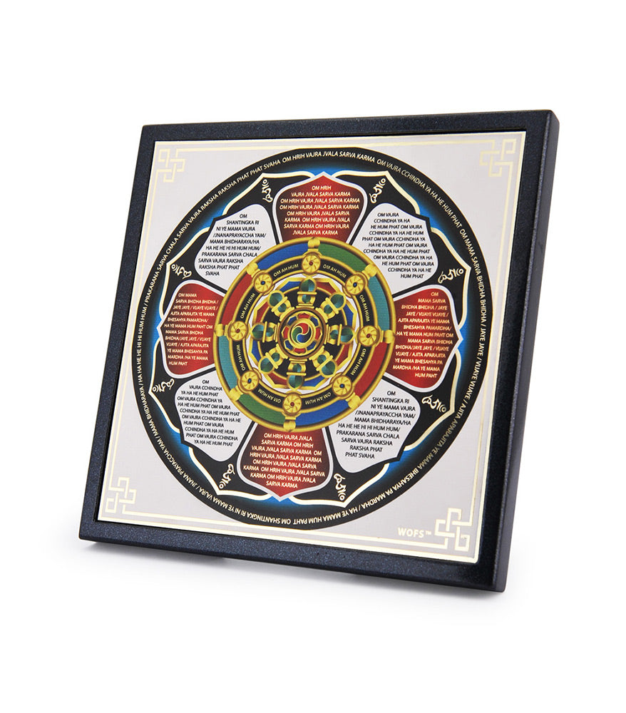 This Dharani Plaque with Dharma Wheel brings happiness and contentment to your home. It helps sever attachments to negative feelings and releases you from being bound to unhappy thoughts. If you can chant the Dharani at least once a day, you will find yourself feeling happier and more contented, where any obstacles you face will never create stress or unhappiness for you. The Dharma Wheel enhances good energy vibrations and symbolizes continuous good fortune.