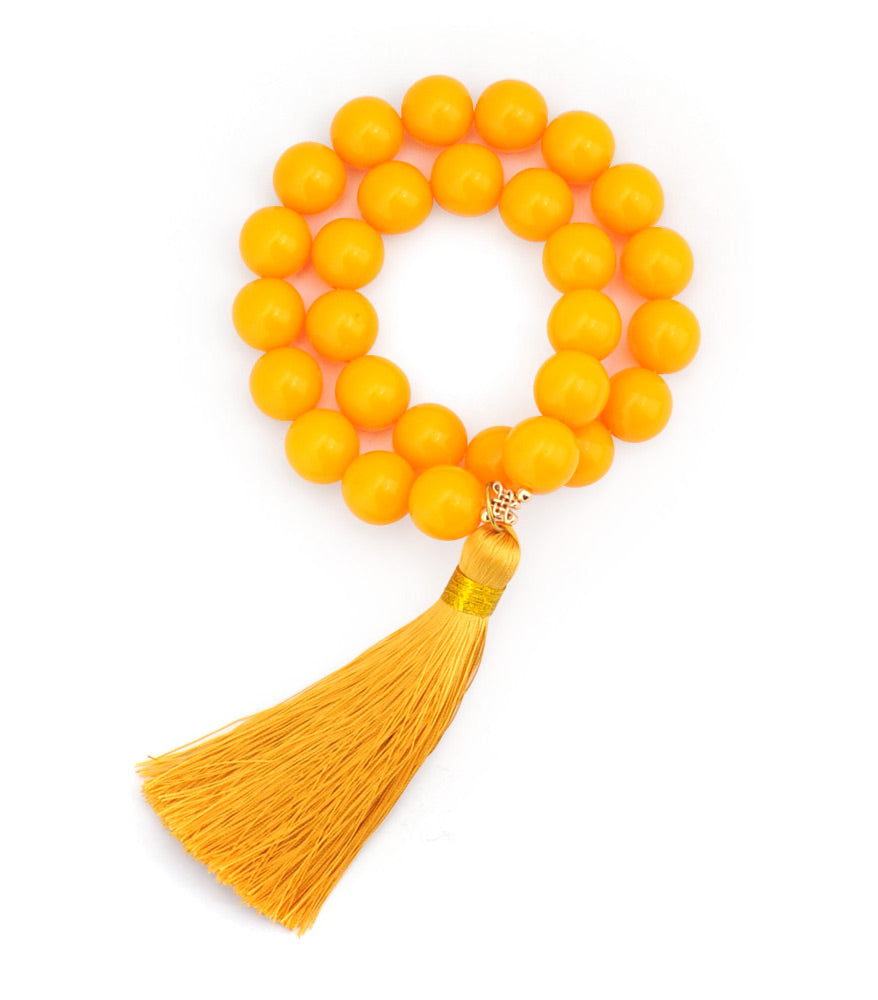 This beautiful amber mala is perfect for chanting the mantra of Dzambhala. Dzambhala bestows powerful wealth and money luck and will make sure you never run out of money.