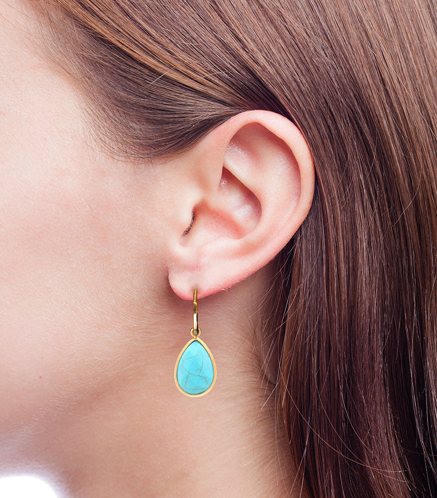 Turquoise Drop Earrings with “Hum” Seed Syllable