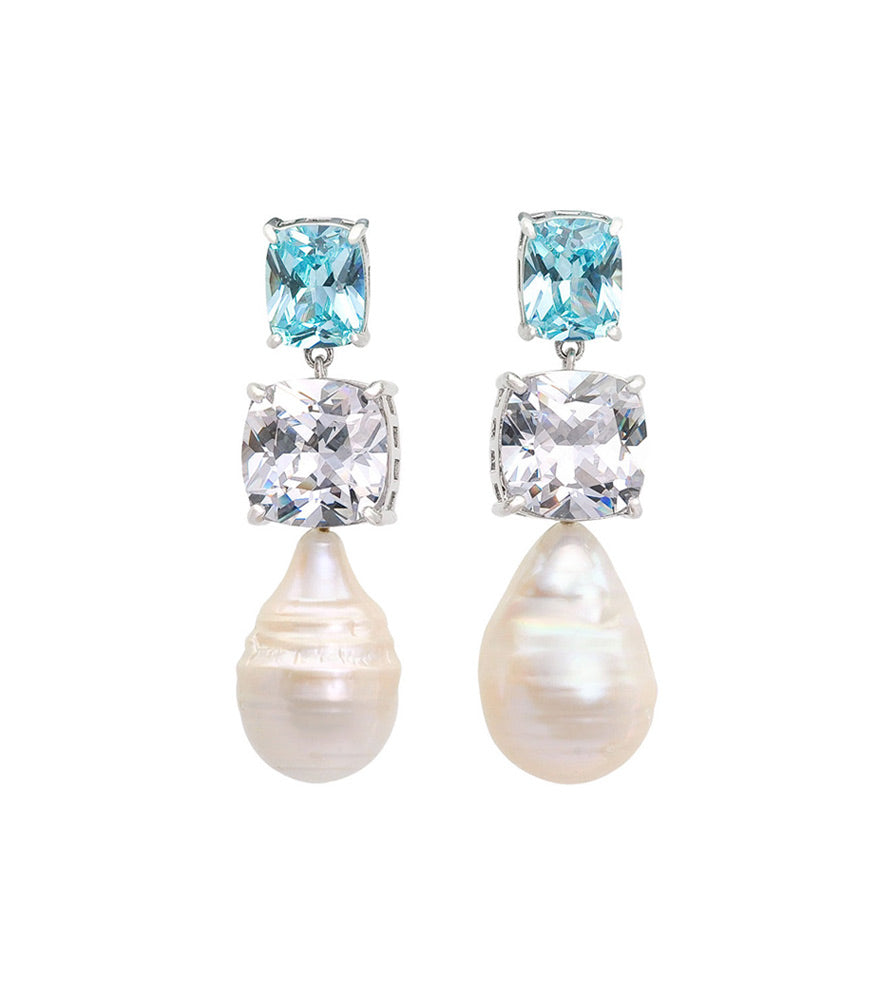 Make: Rhodium Plated with 18K Gold, Grade AAA Zirconia and Freshwater Baroque Pearls with Irregular Shape