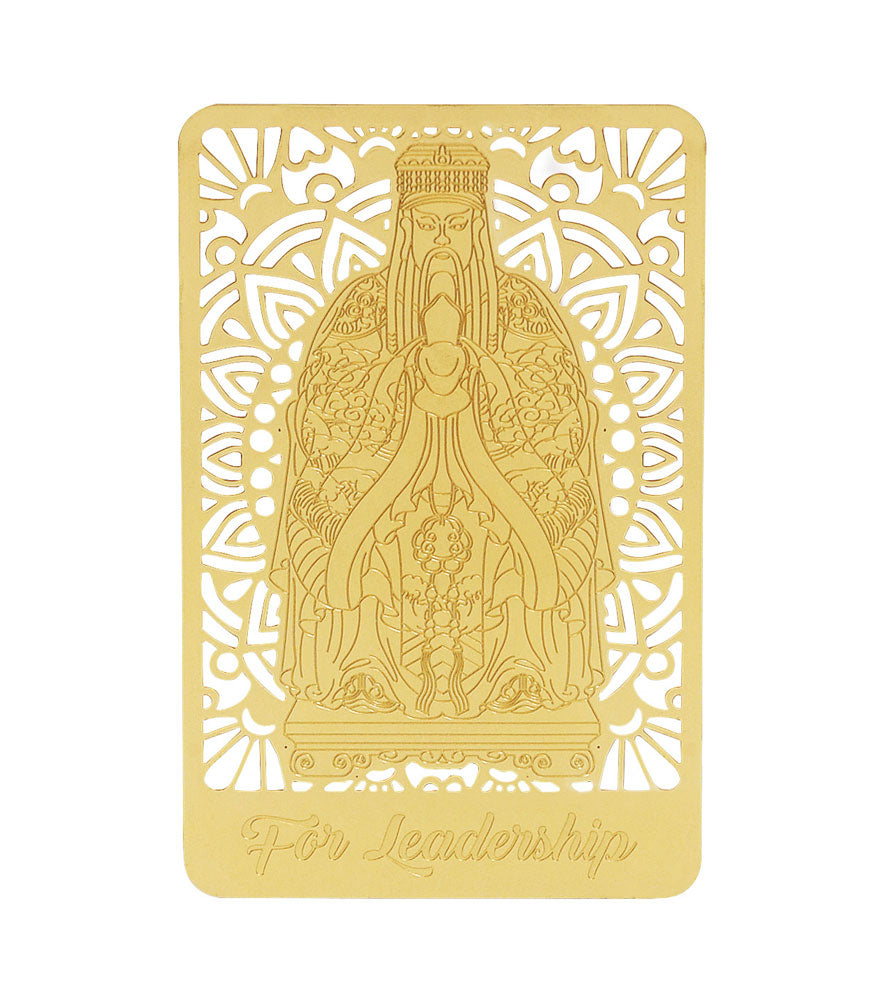 This golden wallet card features the Jade Emperor with Chinese talisman to bring leadership luck. Carry in your wallet to increase your influence over others. Suitable for bosses, managers and anyone in a leadership role. Protects against betrayal. Keeps those you manage loyal to you.