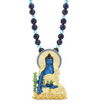 Medicine Buddha is the deity that comes to the aid of anyone with health obstacles in their life. This exquisitely crafted Medicine Buddha pendant strung with lapis lazuli beads, the same colour as his body, keeps you safe from accidents, injury, illnesses and contagious diseases. Wear to allow Medicine Buddha's sacred energies create a protective force field around you. Keeps you safe during your travels, at work and in your day to day living.