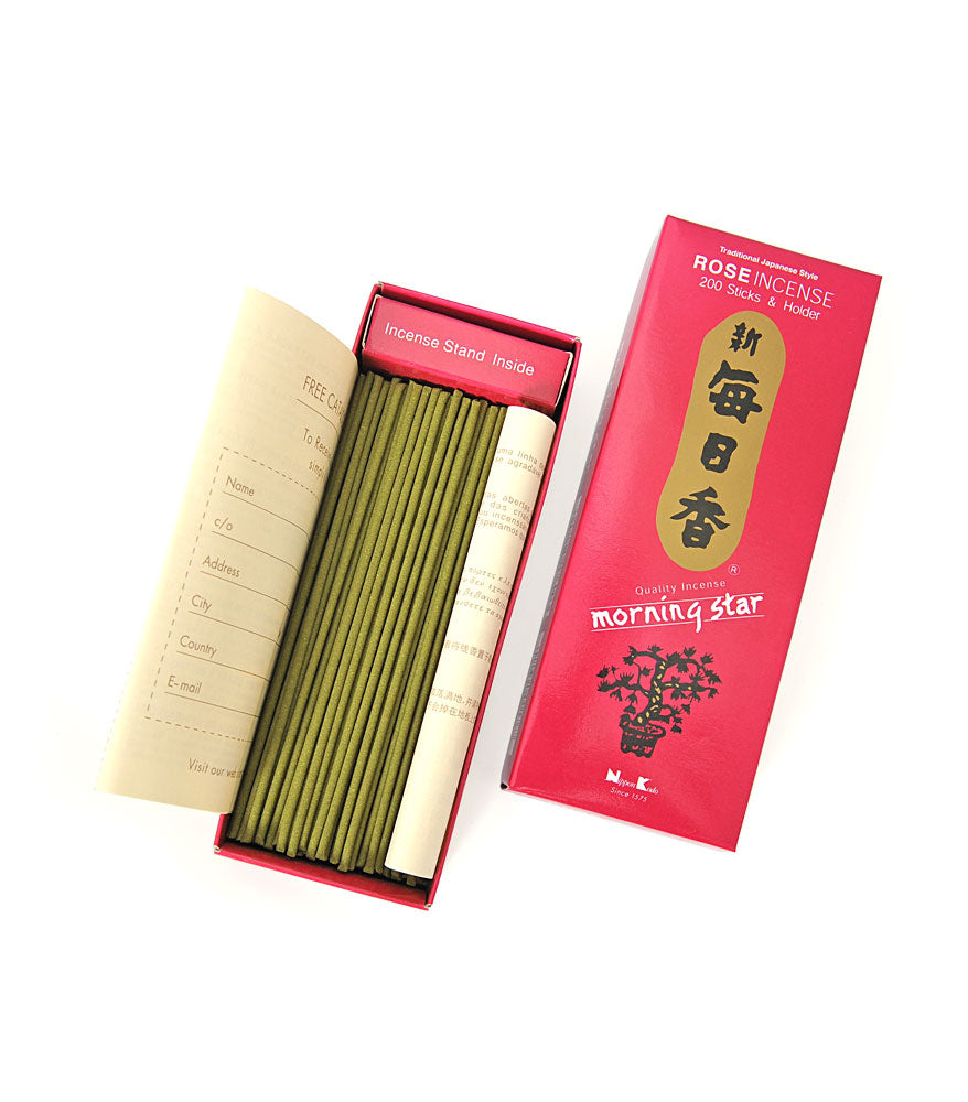 The best-selling incense for daily use. Morning Star incense was created in the 1960s in Japan. It has been loved for over 40 years not only by the Japanese but people all over the world. The powerful fragrances in this collection mixed with high quality ingredients such as pure floral essences and aromatic woods, have made this incense a beloved and trusted worldwide brand. Morning Star is perfect for when you want to create a relaxing atmosphere for meditation, prayer, and yoga. This is a value package and contains 200 sticks. Morning Star sticks have no bamboo core, which means there is no wood odor when burning, so you can enjoy the true fragrance of the incense. Traditional Japanese Style Fragrance that creates a mood of tranquility and peace of mind. A daily source of Tranquility & Serenity.