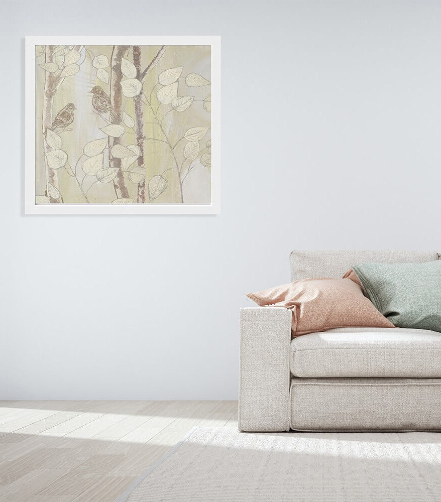 Silver birch trees and 2 wise birds bringing harmony into the home. Bringing nature and these earthy tones together makes this a wonderful enhancer for the earth element.