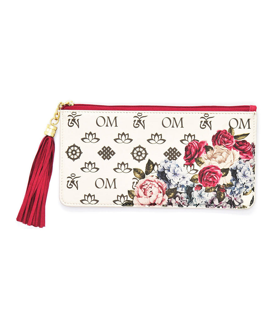 Our stylish OM Wallet not only oozes fashion, it attracts blessings of auspiciousness and increases the good fortune of everything you place inside it! Featuring our classic monograms of the lotus for pure love, the auspicious seed syllable OM, the wheel of high wisdom and success and the everlasting mystic knot, carrying your belongings in this wallet or card holder empowers them with good vibes and invites at least four good things into your life!