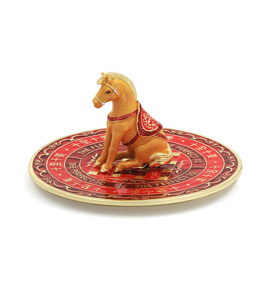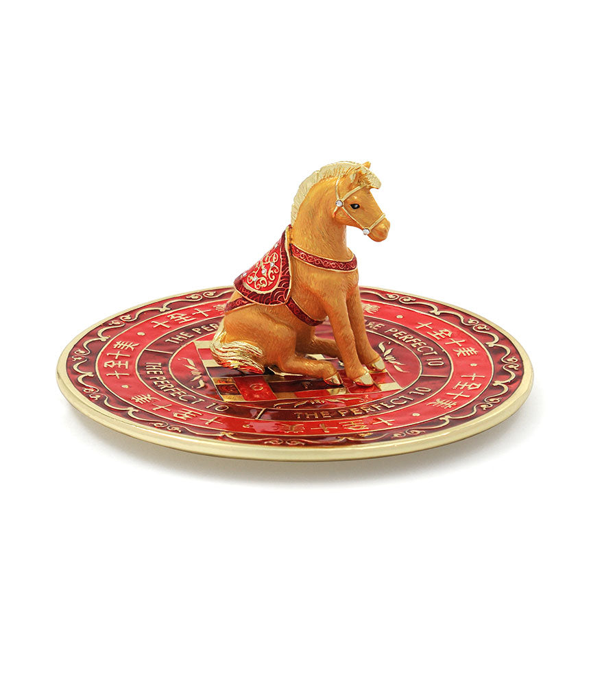 This stunning tabletop enhancer features the Completion Horse set against a symbolic plate with the phrase “十全十美” (Shi Quan Shi Mei) meaning “Perfect in every way”. A powerful enhancer for 2026, when Sum-of-Ten energy dominates the year’s chart - formed by the alignment of Annual Star 1 and Period Star 9 in the center. This formation brings opportunities to complete big goals, seal deals and achieve lasting success.
