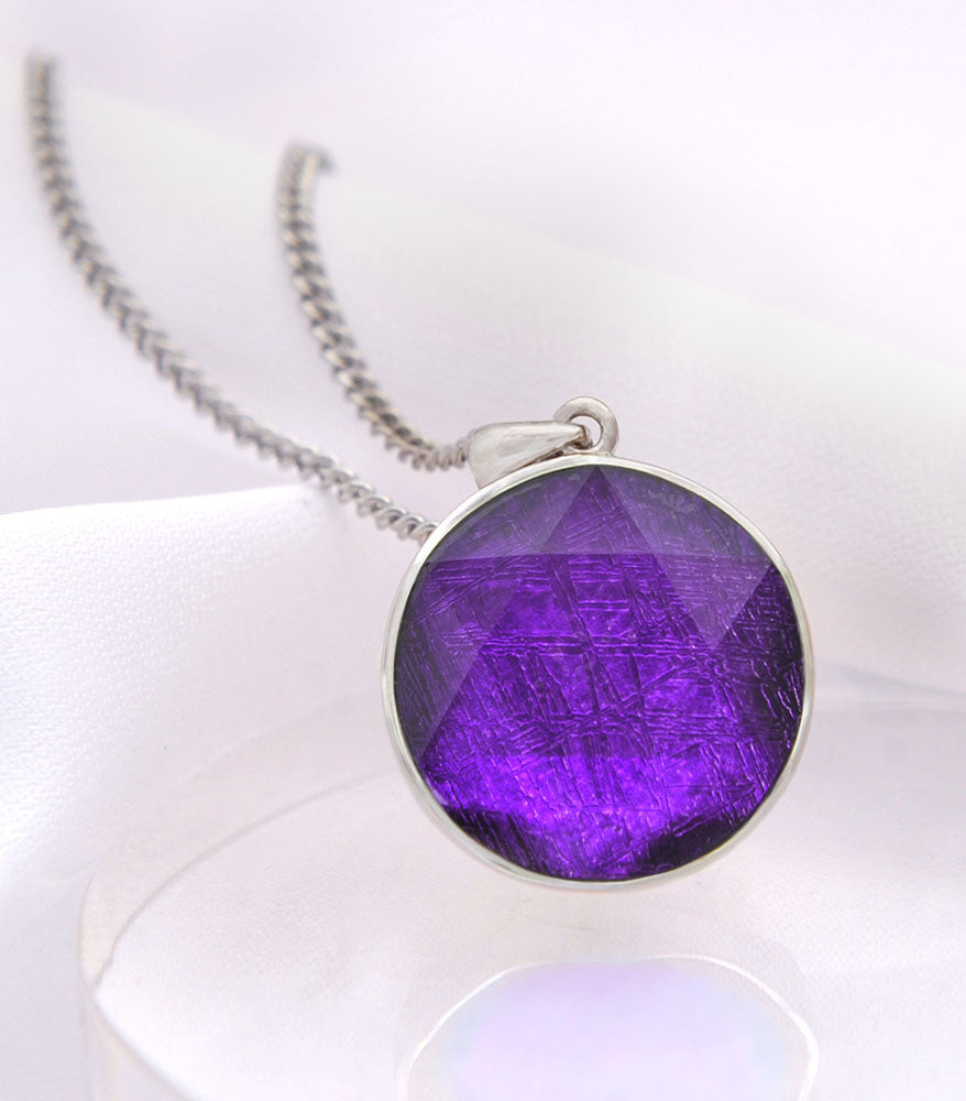 Purple Meteorite Disc Pendant with Necklace (20mm)