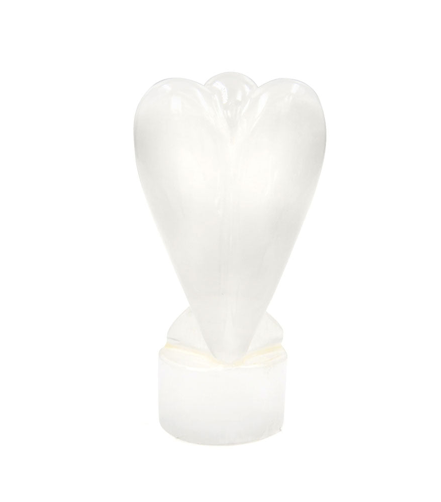 Selenite, a healing stone with high vibrational qualities, improves well being by calming the mind. Effective at clearing blocked energy within any space. Carved into the form of an angel, it brings good fortune that manifests as new opportunities and protection against harm. Invite this gorgeous Selenite Angel into the home to amplify good fortune, to improve harmony among family members, and to dissipate obstacles that may arise from time to time.