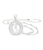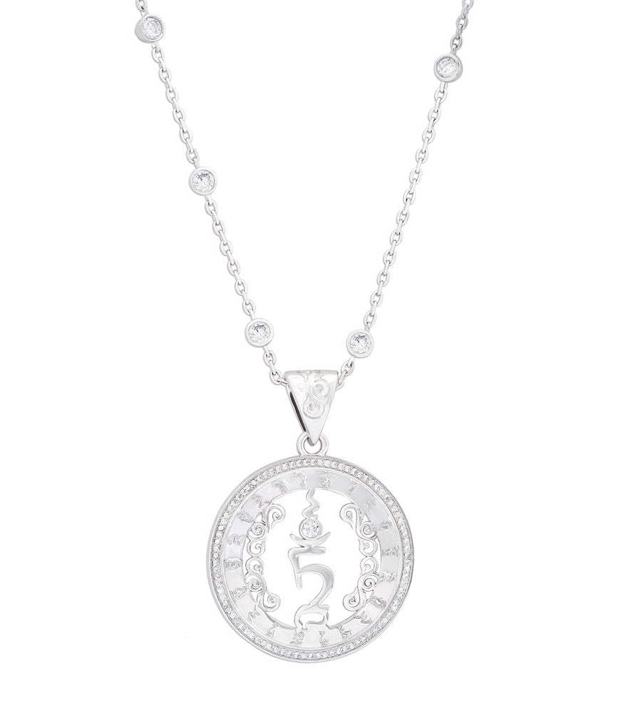 This stunning Green Tara pendant features TAM, the seed syllable of Tara and the powerful mantra OM TARE TUTTARE TURE SOHA who has the power to help you overcome problems and obstacles of any kind. The pendant is studded with precious zirconia diamonds to channel the blessings of Tara. Tara is the ultimate goddess who brings swift success and fulfillment of all your wishes.