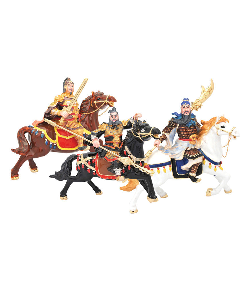These three warriors Zhang Fei, Kuan Kung and Liu Bei - are the three great heroes of Chinese history and have always been associated with courage, integrity and honour. They are synonymous with the three qualities that bring the best kind of VICTORY. These three warriors personify above all else the strategic mind - so they win their battles by using smart moves, usually preferring clever diplomacy to outright fighting.