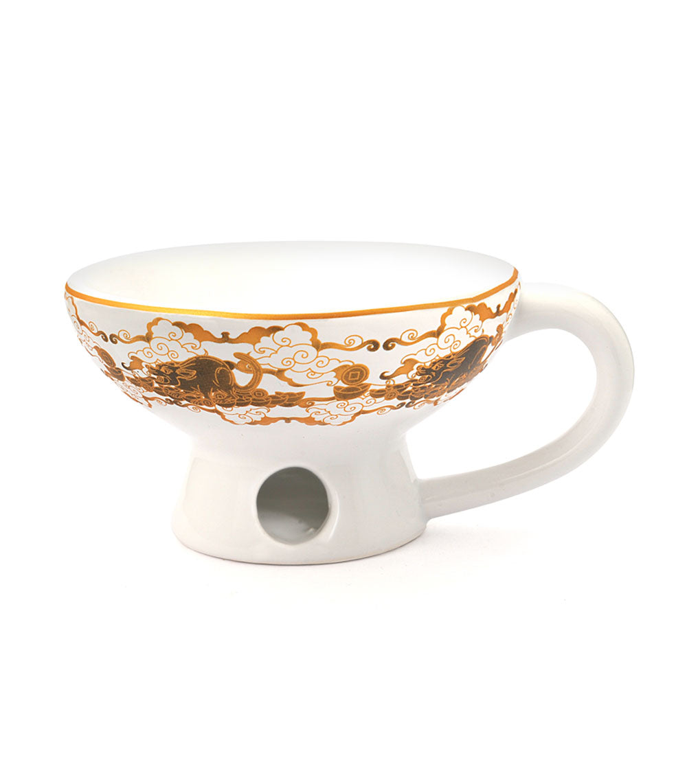 This beautiful porcelain incense holder is designed to make it easy for you to perform incense offering rituals as often as needed. An incense offering ritual uses the fire and air element to clear away stagnant energy in a home, and to appease spirits, local landlords and protectors that could bring mischief or obstacles to your life. The side of this gorgeous bowl is decorated with the Mongoose a heavenly animal associated with the wealth bringing Dzamhala. As the Mongoose is a kind of Rat, which happens to be the secret friend of the Ox, it also brings harmony and smoothness to all of your relationships. You should use this burner of you are praying for wealth or if you are have problems with inter personal relationships.