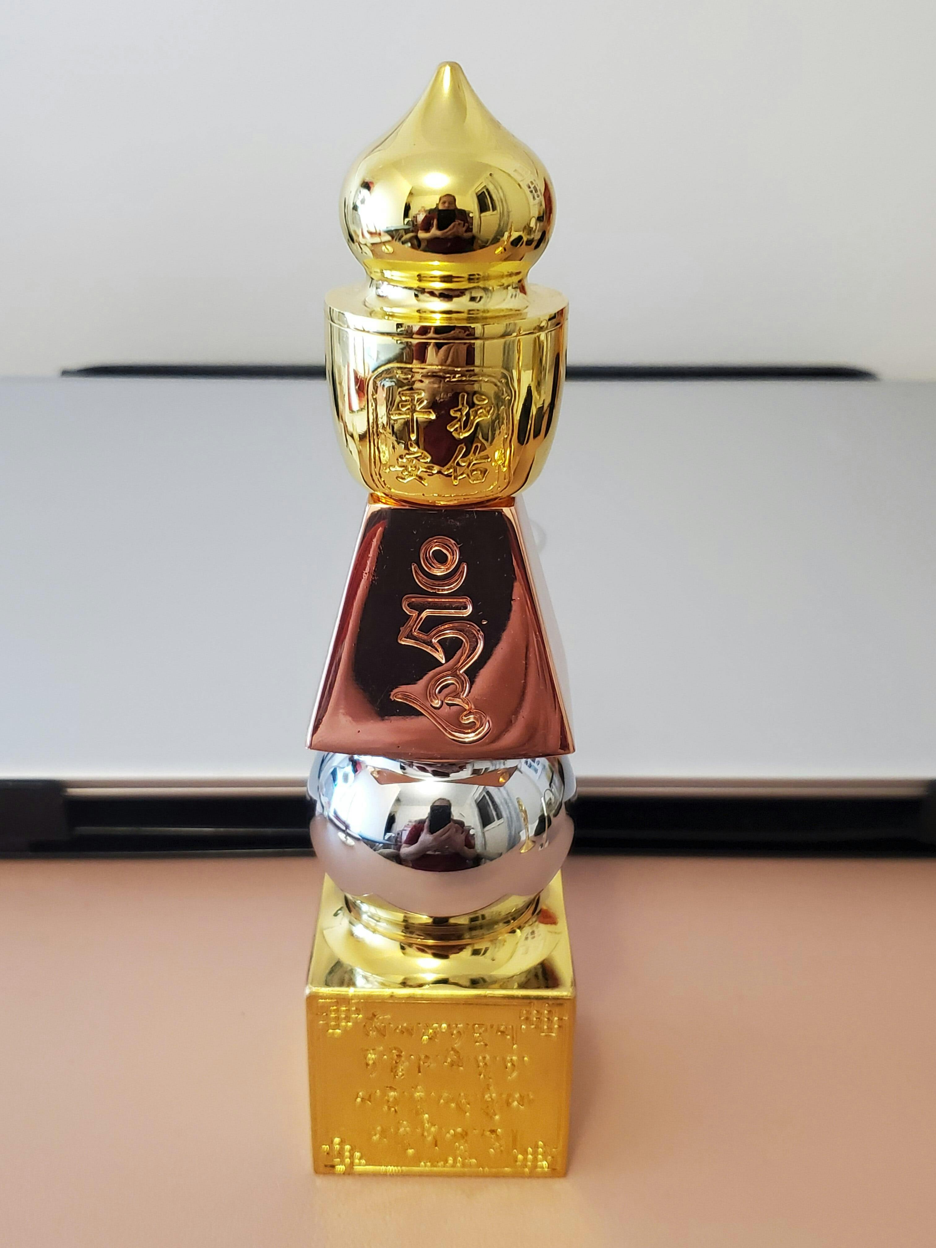 This year’s Five Element Pagoda features the White Umbrella Goddess mantra on its base, with the Chinese couplet “Bringing peace and protection against harm”. The White Umbrella Goddess is a deity who manifests her power with her thousand heads, arms and legs; it is believed that just viewing her mantra protects against illness, disasters and spiritual harm, as well as bringing great auspiciousness.
