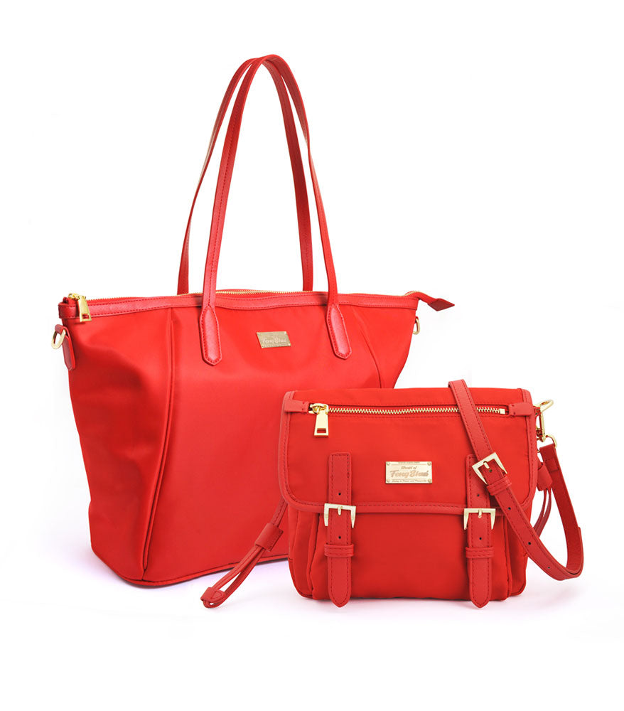 WOFS Lucky Tote Bag & Lucky Buckle Messenger Bag (Red)
