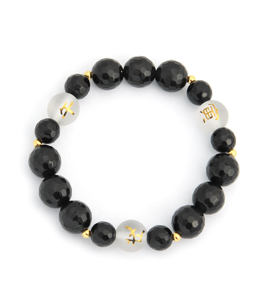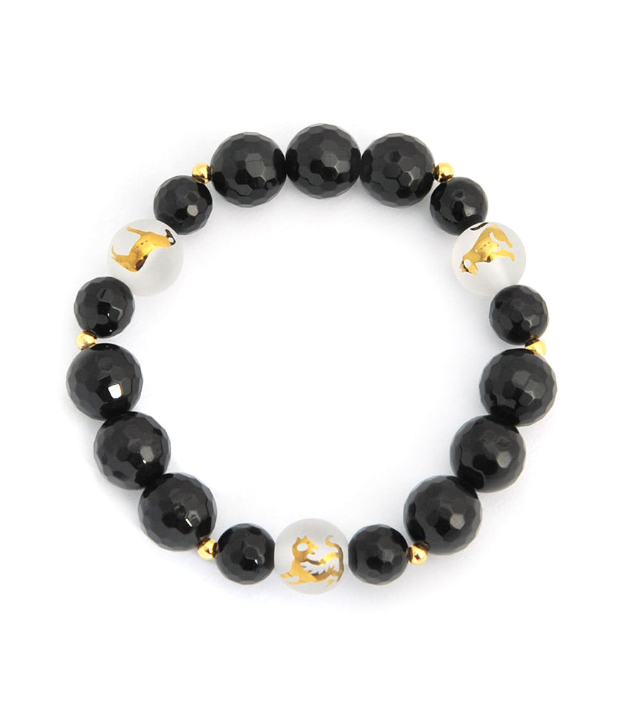 Care instructions: This charm bracelet contains: horoscope beads, black onyx beads. To clean, use a damp cloth but do not soak in water. Silver elements may tarnish when exposed to sweat for prolonged periods; polish with a jewellery cleaning cloth to maintain a quality shine.
